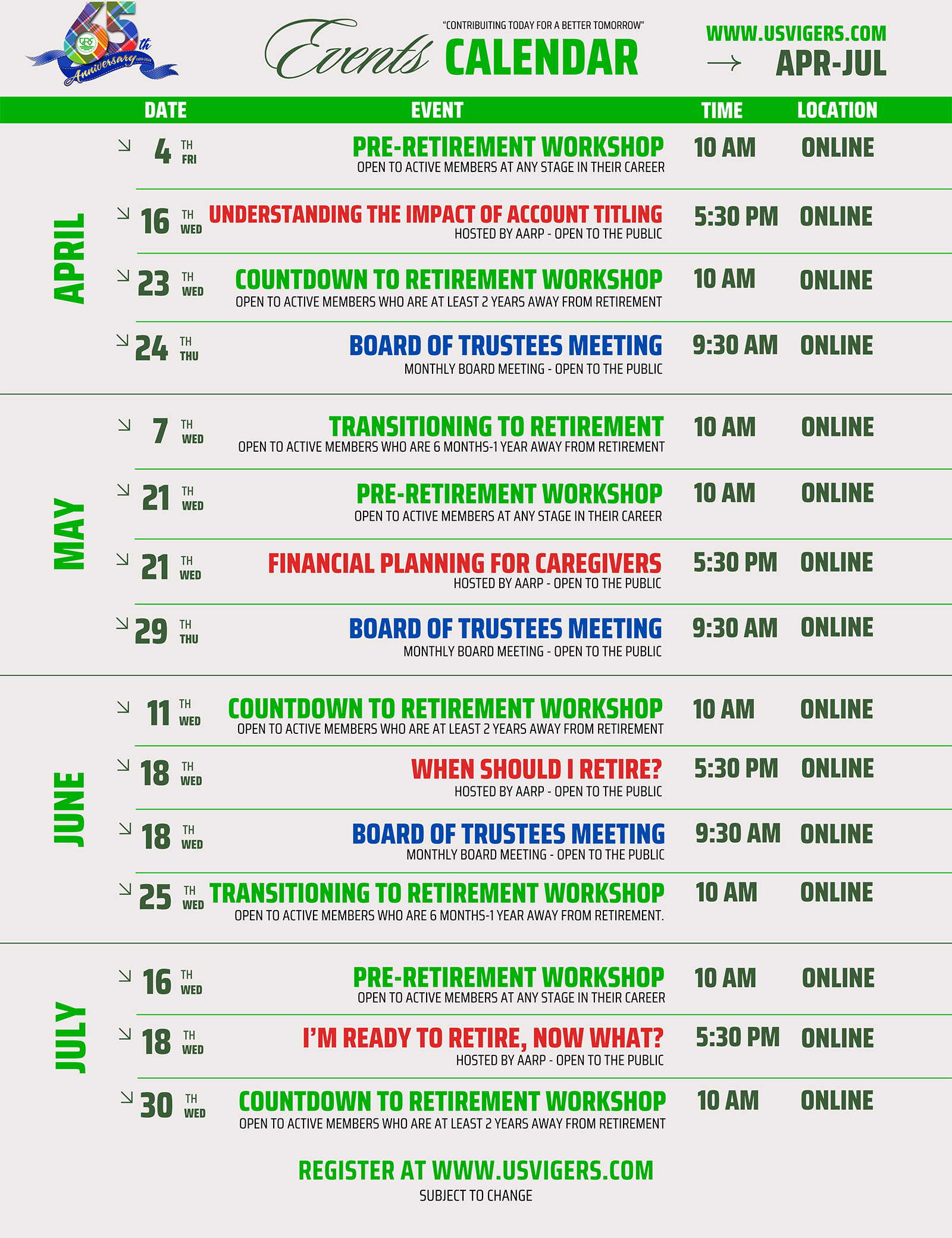 Events Calendar Apr-Jul 2025